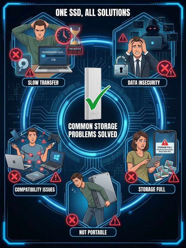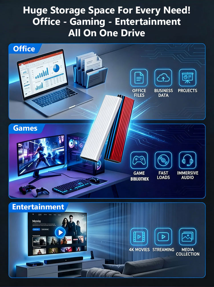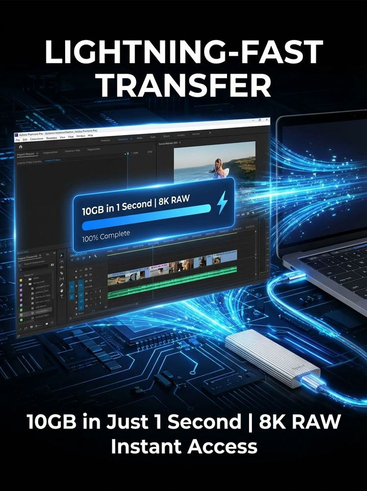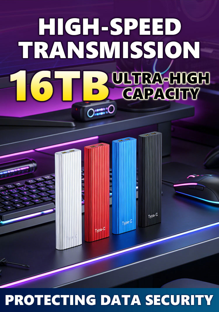 16TB Portable External SSD | 1000MB/s High-Speed NVMe | USB 3.2 Type-C | IP54 Waterproof Drive