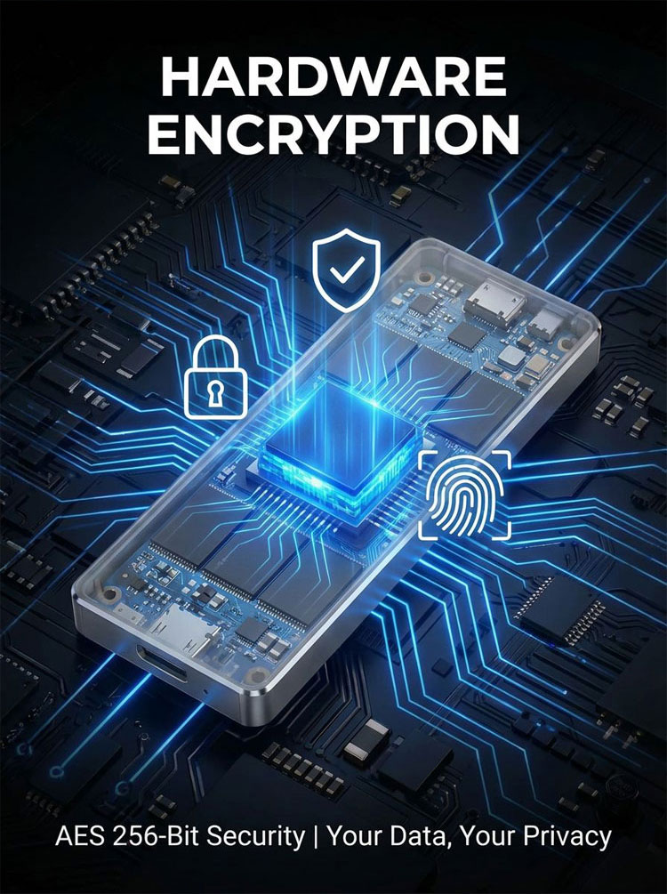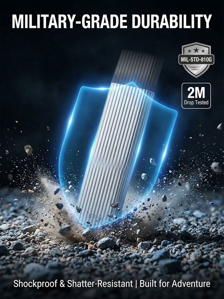 IP65 Waterproof, Shockproof, and secured with AES 256-bit encryption. 🔒