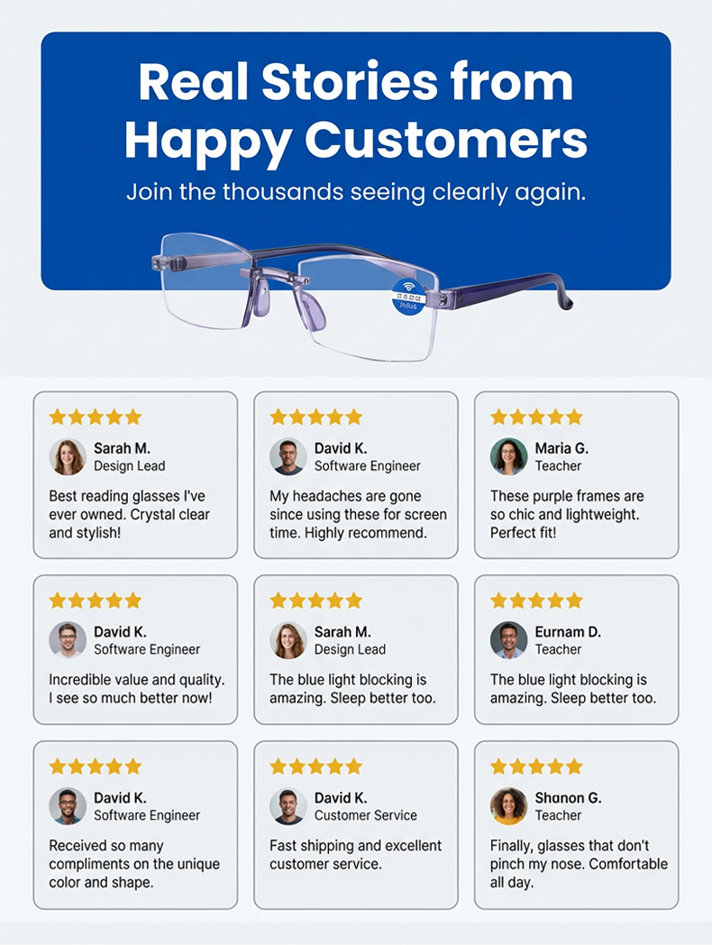 ✨ Whether it's nearsightedness, farsightedness, or astigmatism—even if each eye has a differentprescription: just put them on for instant clear vision.